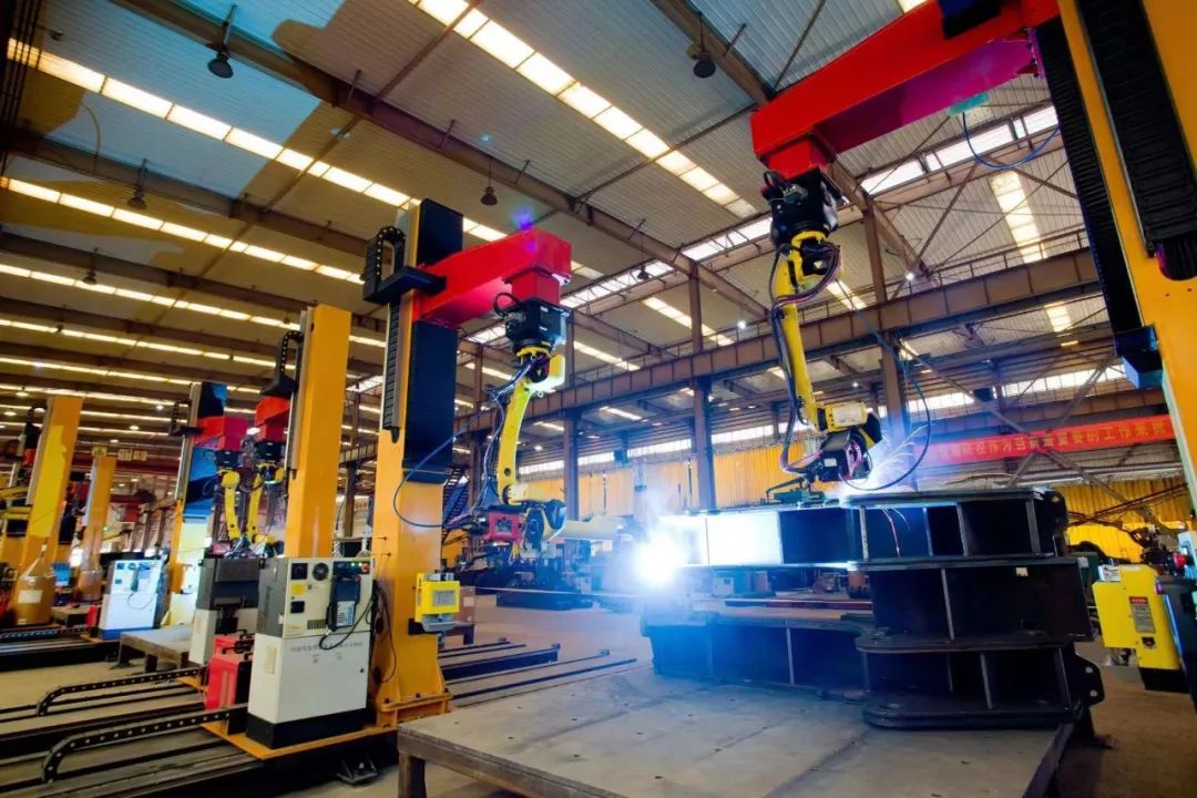 安徽礦機智能坡口機器人正在進行坡口加工處理