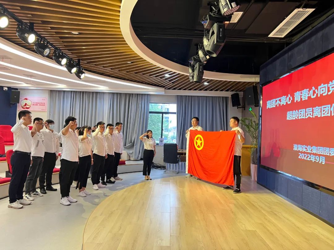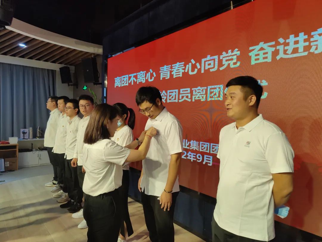 離團儀式在青春洋溢的《光榮啊,中國共青團》歌聲中拉開帷幕。集團團委組織活動青年職工開展《新時代的偉大成就》專題學習,共同觀看《這十年》微視頻。宣讀超齡離團團員名單,帶領全體超齡團員面向團旗立正,右手握拳,舉過右肩,重溫入團誓詞。隨后,為全體超齡離團團員摘下團徽,并贈送了《中國共產黨章程》《習近平談治國理政》第四卷、《論黨的青年工作》和離團紀念品。