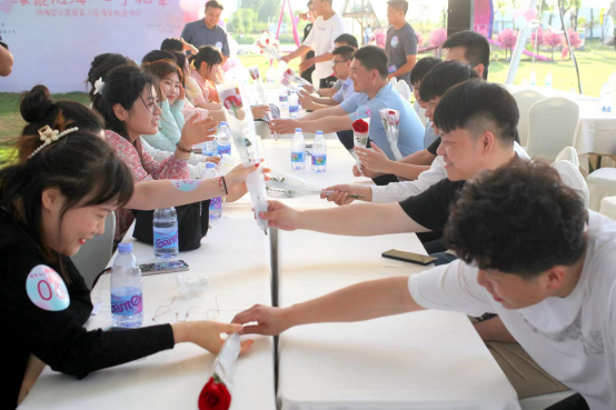 活動在淮北市百蓮百荷景區舉行,“擊鼓傳花”“兩人三足”“你劃我猜”環節讓青年們在簡單的游戲中迅速“破冰”,通過初步了解,拉近彼此間的距離;“很高興認識你”“緣來是你”環節把活動氣氛推向高潮,青年們熱情高漲、敞開心扉、表白真心、尋求真愛。