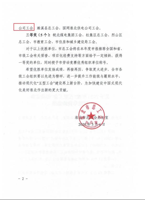 3月6日,淮北市總工會召開十三屆三次全委(擴大)會議。會上通報了2024年度全市“五型工會”勞動競賽優勝單位、宣傳工作勞動競賽結果和市總工會委員會優秀委員。淮海實業集團工會獲2024年度“五型工會”勞動競賽二等獎、全市工會宣傳工作勞動競賽二等獎,集團工會副主席朱建華獲評市總工會委員會優秀委員,并在會上做交流發言。