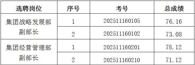 淮海實業(yè)集團機關(guān)部門副職招聘筆試、面試工作已結(jié)束,根據(jù)應(yīng)聘人員筆試、面試總成績確定考察人選,現(xiàn)將考察人選公告如下: