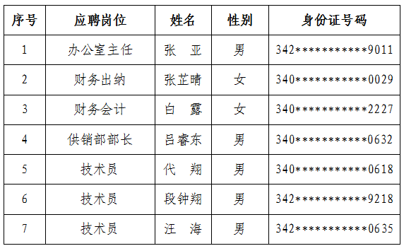 面試工作已結束,根據面試成績,經研究,確定