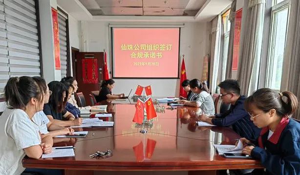9月20日,仙珠公司組織全體干部職工簽訂合規(guī)承諾書(shū),規(guī)范履職行為,依法合規(guī)履行崗位職責(zé)。