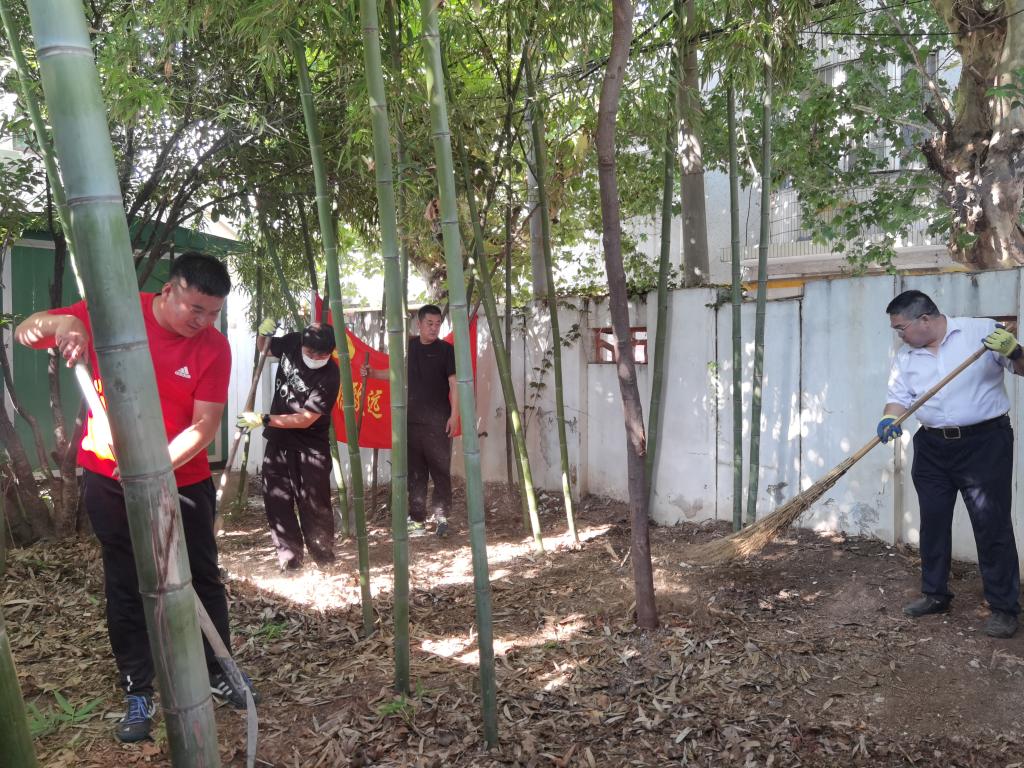 志愿者們手拿掃把、鐵鍬等勞動工具,分工合作,仔細的打掃院內塑料袋、紙片、果皮等生活垃圾,并對竹林內的雜草、石塊進行清理,做到不留死角。大家冒著高溫,充分發揮了“不怕累、不怕臟、不怕苦”的精神,用汗水刷新園區“高顏值”。該公司黨總支今后將以文明創建活動和各類主題黨日活動為契機,繼續開展以環境衛生整治和清掃工作為內容的服務活動,營造“公司是我家 潔凈靠大家”的良好氛圍。(李小雪)