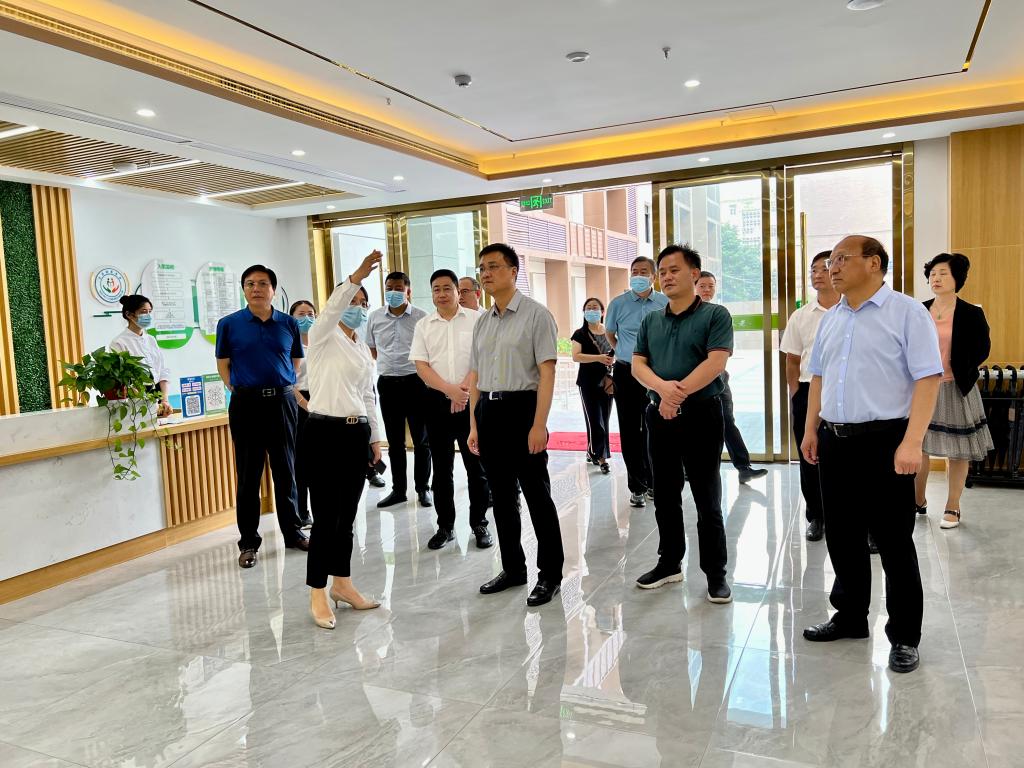7月29日,淮北市政府黨組成員姚珂、市政協(xié)副主席孫興學(xué)到淮海養(yǎng)老黎苑社區(qū)綜合為老服務(wù)中心和淮海康養(yǎng)中心調(diào)研。集團(tuán)公司總經(jīng)理助理戴禮越陪同。