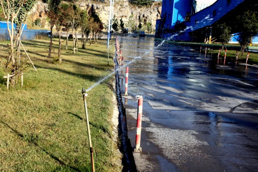 據悉,礦山分廠第四黨小組所在工藝線地處北外環,風沙大,線路長。骨料發運道路近2公里,發運廣場近7000平米,因環保需要,分廠霧炮車和灑水車僅能保證石料采裝作業面使用,不能兼顧發運線路及廣場,自動噴淋系統最大限度地減少了發運道路重車揚塵,實現現場綠色生產,清潔發運。不僅徹底解決了發運現場揚塵問題,還兼顧現場的草坪綠植灑水,一舉兩得。