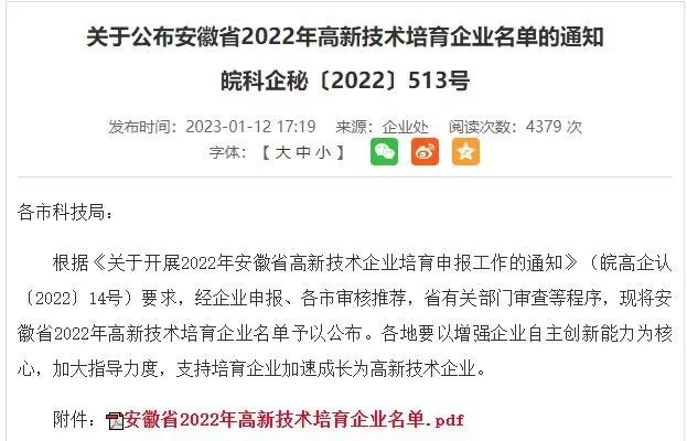 新年伊始,中冶淮海公司喜獲佳音,憑借專業的研發隊伍、雄厚的技術實力、持續的創新能力、科學的企業管理,順利入選安徽省2022年高新技術培育企業名單。