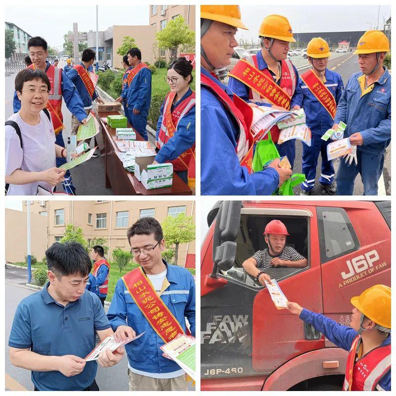 相山水泥組織青安崗員和鑄安志愿者,開展安全宣傳活動,工作人員通過發放宣傳折頁、宣傳畫、設置咨詢臺、懸掛宣傳橫幅等形式,集中向職工群眾宣傳安全生產、消防安全等安全法律法規、方針政策和自救互救方法等知識,此次活動共發放宣傳單、防暑用品300余份,現場受教育職工、群眾達500余人次。