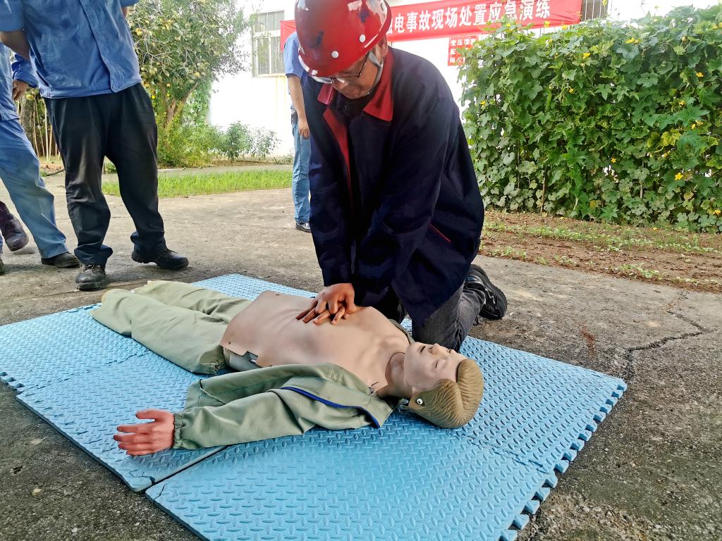 演練筑安全。開展觸電事故現(xiàn)場處置應(yīng)急演練,模擬電工檢修企業(yè)配電中心低壓柜時不慎觸電后倒地昏迷,事件發(fā)生時,工作人員發(fā)現(xiàn)險情,并立即匯報。企業(yè)啟動應(yīng)急預(yù)案,救援組、警戒組、維修組人員迅速集合完畢,分工負(fù)責(zé)、有序開展應(yīng)急處置,整個過程忙而不亂、有條不紊,處理得當(dāng)。活動后,召開現(xiàn)場總結(jié)會議,分析崗位操作規(guī)范,講解作業(yè)安全風(fēng)險、事故應(yīng)急處理流程和處置措施,進(jìn)一步提升全員自主防范能力。