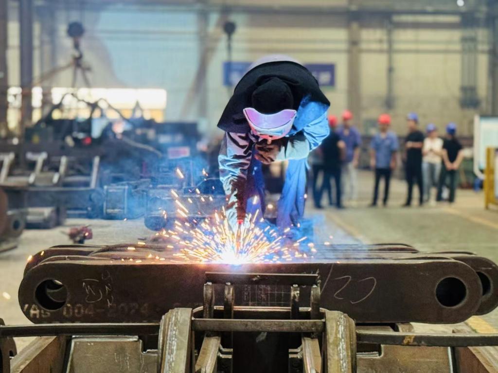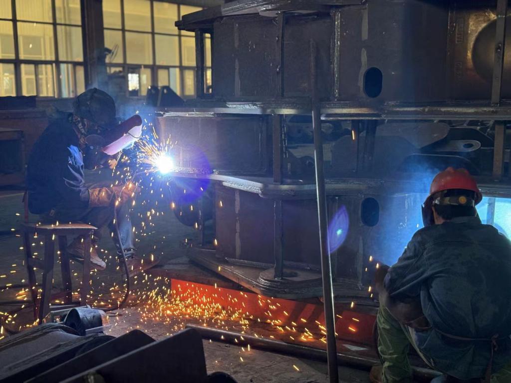 據了解,假日期間該公司生產車間一派盎然景象,三一結構件訂單時間緊、任務重、標準高。生產車間黨支部注重發(fā)揮戰(zhàn)斗堡壘作用,組建黨員突擊隊, 安全、質量、技術等崗位黨員骨干沖鋒在前、協(xié)同作戰(zhàn);各班組倒排工期、開足馬力,實行雙班倒生產機制,合理調配資源,緊密銜接工序,推動生產任務高質量完成。作業(yè)現(xiàn)場,焊工們舞動著焊槍,點點火花奏響奮進樂章,工件有序安裝牢固地連接在一起;鉚工們專注操作,精準點焊,確保結構穩(wěn)定可靠;質檢員們堅守崗位,嚴守關口,為產品質量保駕護航。