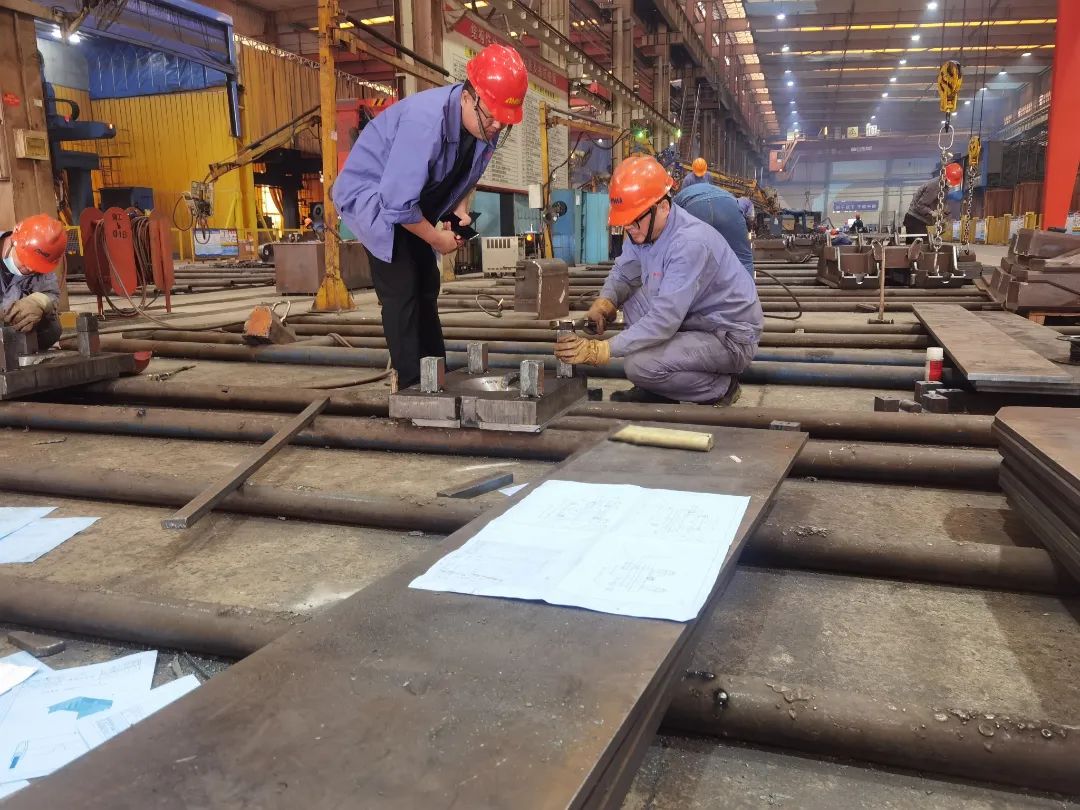 一場緊張而有序的搶修行動正式開始。公司領導帶領技術中心、生產質量部等相關部門人員,第一時間奔赴作業現場,下井了解情況,仔細勘察,找出故障原因并確定維修方案。搶修過程中,工作人員分工明確,各司其職。技術中心通宵設計,繪制輔助裝置圖紙,下料車間抽出8名精英完成下料工序,工達公司一車間5位技術精湛的師傅開動車床、銑床連夜加工,結構件車間凌晨5點開始點組、焊接,直至10月3日11點搶修件全部完工發往礦方。