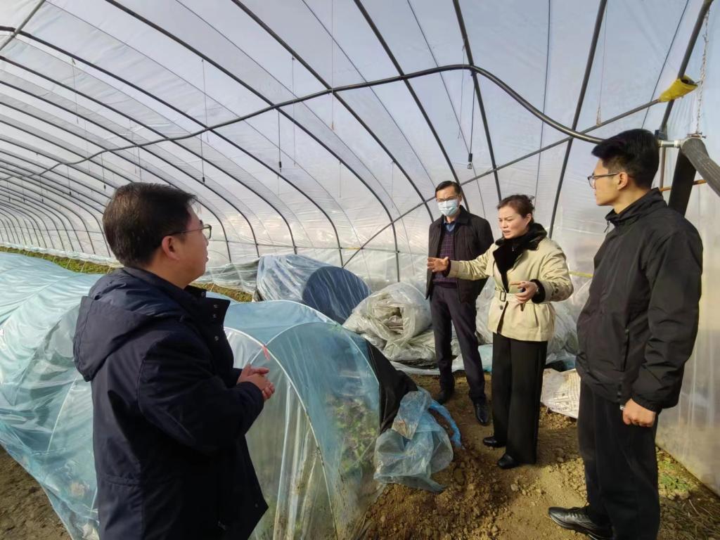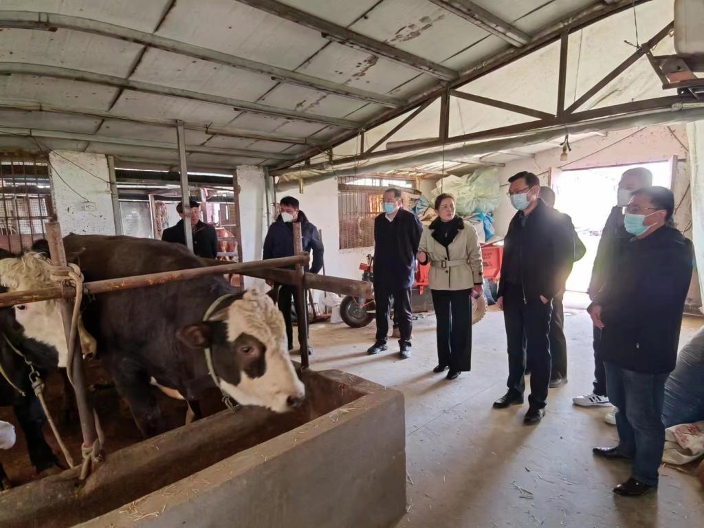 王振江實地查看了花園村大棚蔬菜生產情況,聽取黃花菜種植基地和冷庫下一步運營方向,了解當地養殖戶肉牛養殖現狀,并與當地鎮村負責人座談交流。