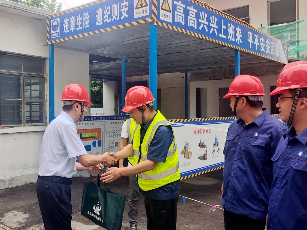 在項目現場,王振江詳細了解項目建設、工期進度、質量安全管理等情況,并看望慰問一線建設者,送去西瓜、風油精等物品,叮囑大家注意防暑降溫,做好個人防護,確保身體健康、安穩度夏。