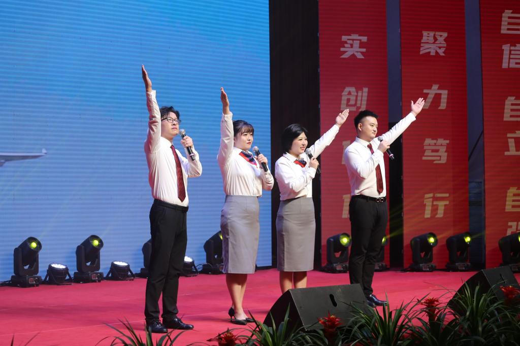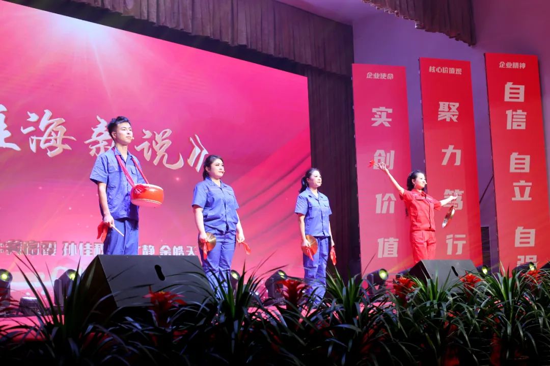“祖國今年七十五,共慶華誕同歡樂——祝賀!”語言類節(jié)目三句半《淮海新說》用形式新穎、詼諧幽默的方式歌頌美麗祖國,回顧企業(yè)十六年來走過的奮斗歷程,讓觀眾耳目一新。葫蘆絲獨奏《竹樓情深》向觀眾展現(xiàn)出民族管弦樂的獨特魅力,武術(shù)表演《太極扇》動作嚴謹細致、舒展大方,男聲獨唱《精忠報國》以震撼人心的旋律和壯麗恢弘的氣勢,讓會場在嘹亮的歌聲中變成了金戈鐵馬的“戰(zhàn)場”。