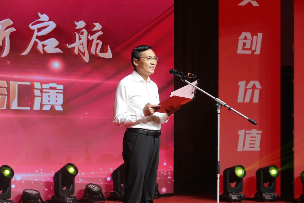 演出在大合唱《祖國你好》《不忘初心》中拉開帷幕。集團公司黨委書記、董事長王振江在致辭中表示,75年長歌奮進,75年風(fēng)雨兼程。中國共產(chǎn)黨領(lǐng)導(dǎo)人民成功開辟了中國特色社會主義道路,取得了開天辟地、改天換地、翻天覆地、驚天動地的歷史偉業(yè)。在中國共產(chǎn)黨堅強領(lǐng)導(dǎo)下,淮海實業(yè)集團走過了16載不平凡、不尋常的改革發(fā)展歷程。16年來,“淮海人”牢記“國之大者”,薪火相傳、砥礪奮進,堅持以“改革創(chuàng)新”為動力、以“合作發(fā)展”為路徑,成功探索出一條“多元化發(fā)展、專業(yè)化運作、集約化經(jīng)營、精細化管理”的轉(zhuǎn)型發(fā)展之路,實現(xiàn)了從改制分立時的步履蹣跚,到改革自立后穩(wěn)健前行的轉(zhuǎn)身蛻變。集團上下要深入學(xué)習(xí)貫徹黨的二十大和二十屆歷次全會精神,聚焦高質(zhì)量發(fā)展首要任務(wù),大力弘揚“自信自立自強、創(chuàng)業(yè)創(chuàng)新創(chuàng)優(yōu)” 企業(yè)精神,全力以赴拼經(jīng)濟、聚精會神推改革、理直氣壯抓黨建,不斷增強核心功能、提高核心競爭力,實創(chuàng)價值、質(zhì)領(lǐng)美好,著力打造“更具戰(zhàn)略定力、發(fā)展活力、競爭實力的現(xiàn)代化產(chǎn)業(yè)集團”,為做強做優(yōu)做大國有資本和國有企業(yè)、全面建設(shè)現(xiàn)代化美好安徽貢獻“淮海”力量。