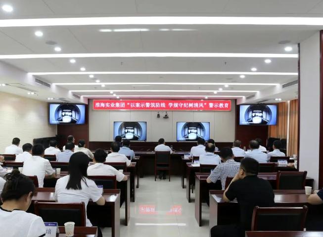 為推深做實深入貫徹中央八項規定精神學習教育, 6月12日,淮海實業集團黨委開展“以案示警筑防線,學規守紀樹清風”警示教育,深化以案為鑒、以案明紀,進一步筑牢黨員干部遵規守紀、廉潔從業的思想防線。集團領導班子成員、副總師級領導、機關中層以上管理人員,以及部分機關黨支部委員等參加活動。